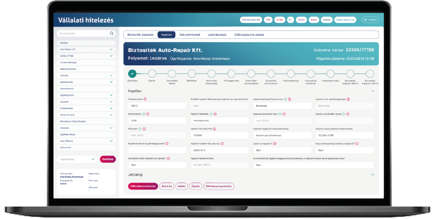 A complex multi-layered, distributed workflow management system that covers the entire loan application process, data entry, verification, scoring, risk management, contracting, disbursement for all available products. Implementation within months, after which, according to our experience, Time to yes/time to cash can be reduced by 40-60%, while the number of documents can be reduced by 50%.