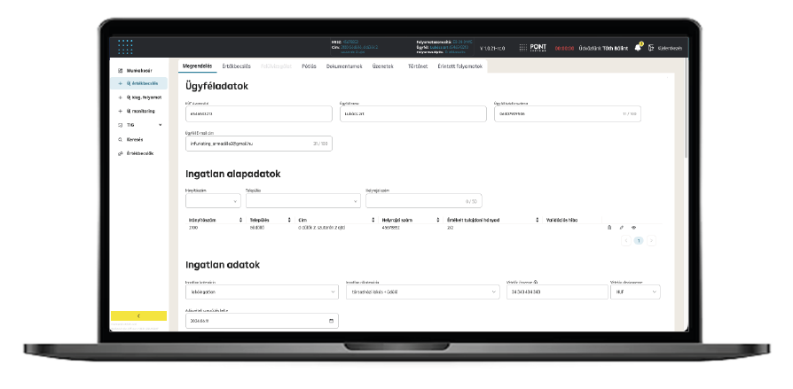 A rendszer teljeskörűen lefedi a banki értékbecslési folyamatot az alábbi funkcionalitással: